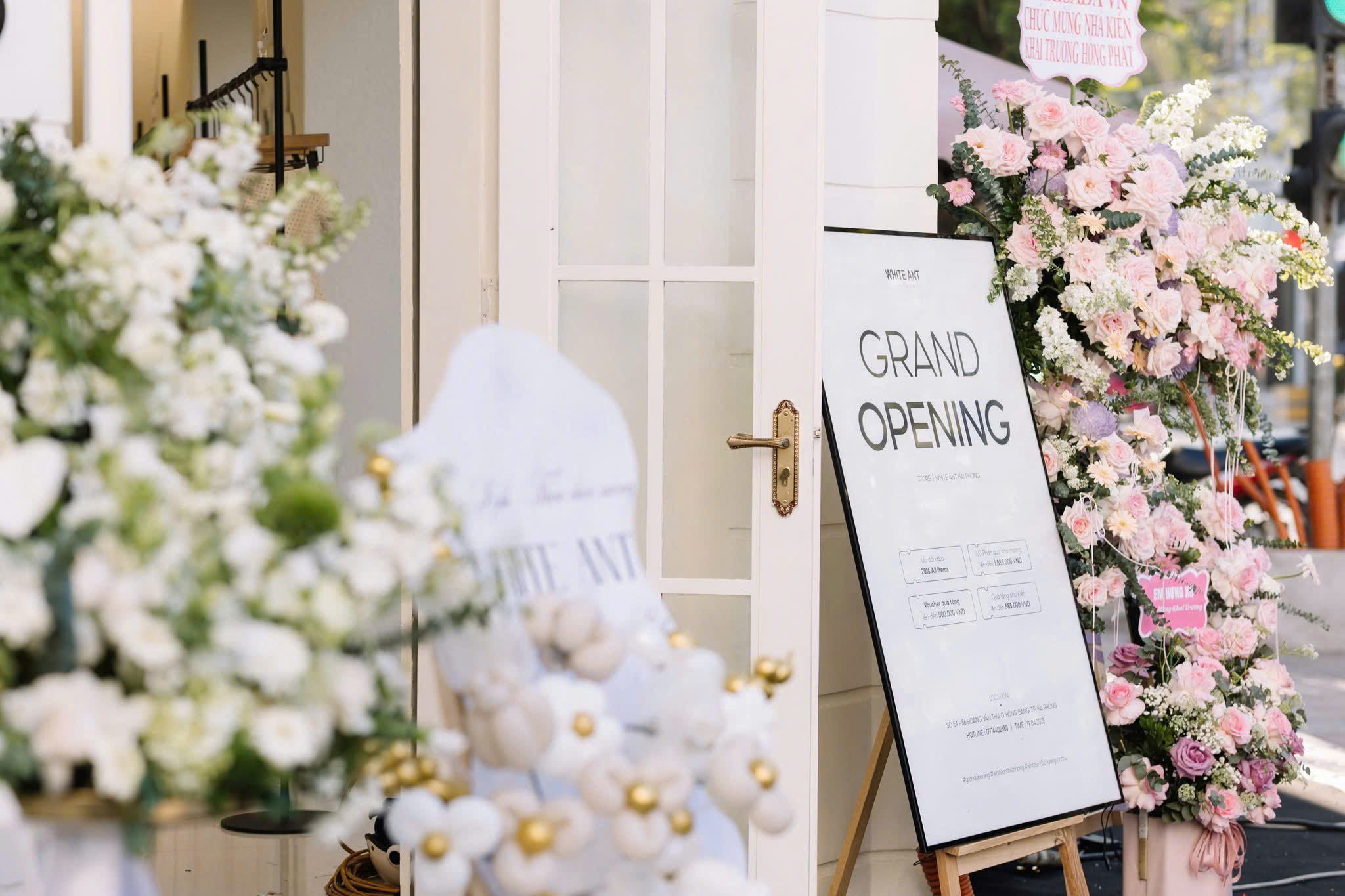 Để tạo ấn tượng ngay từ cái nhìn đầu tiên, khu vực trang trí khai trương được thiết kế với concept hiện đại, sang trọng và đồng bộ nhận diện thương hiệu.Mỗi chi tiết decor đều mang ý nghĩa về sự khởi đầu tươi mới và tinh thần thời trang hiện đại, phản ánh phong cách mà thương hiệu muốn gửi gắm tới khách hàng.