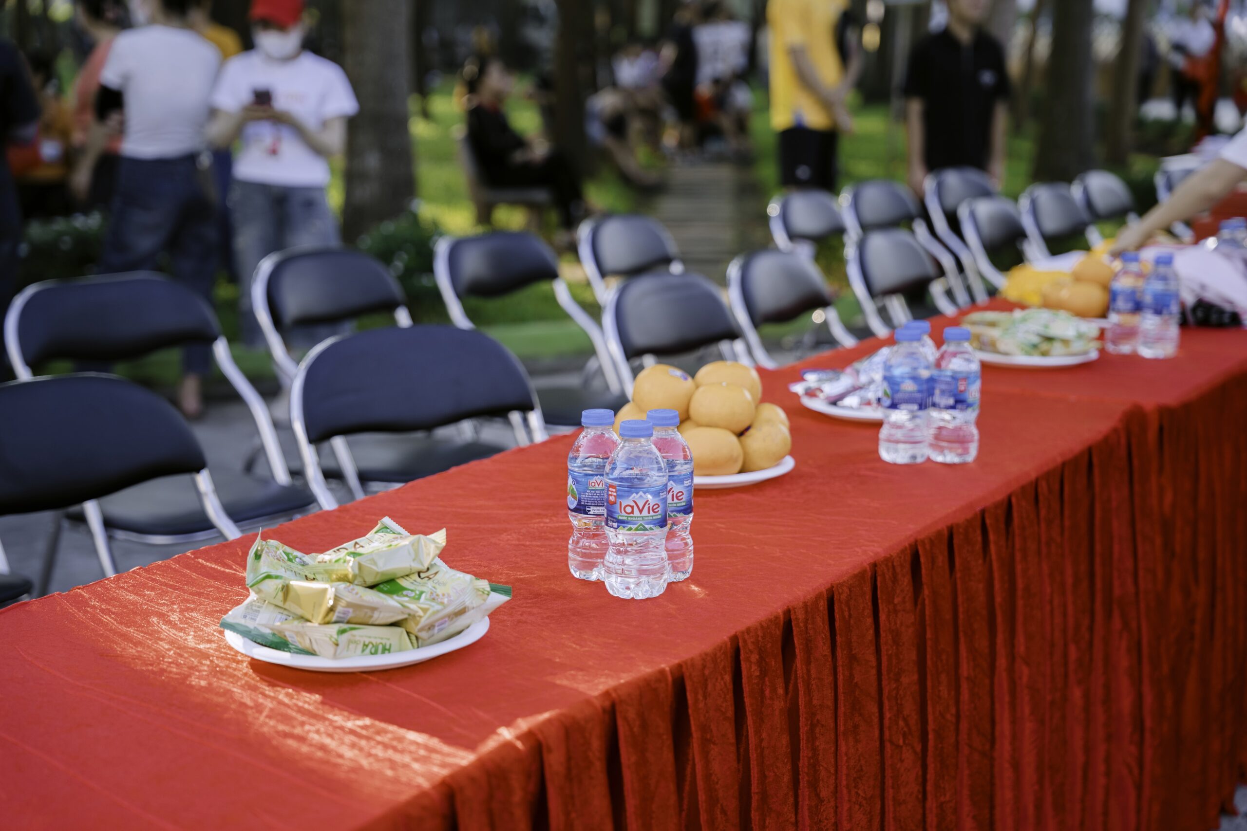 • Khu vực đón tiếp bàn đại biểu đươc chuẩn bị chỉn chu và đầy đủ nước uống, tráng miệng, hoa quả dành cho khách mời, Ban lãnh đạo công ty
